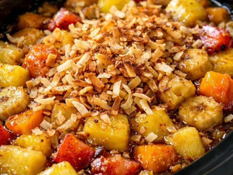 4-Ingredient Slow Cooker Tropical Fruit Bake: Sweet, Spiced, and Effortless