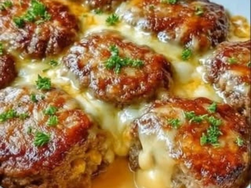 This dish takes classic hamburger steaks—seasoned ground beef patties—and transforms them into a family-style casserole, layered with tender potatoes, sweet onions, and a rich, creamy gravy. Everything bakes together slowly, allowing the flavors to meld into something far greater than the sum of its parts.