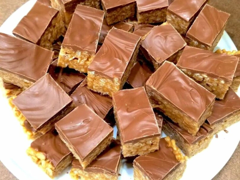 - Sprinkle with peanuts and chopped milk chocolate or Snickers pieces.