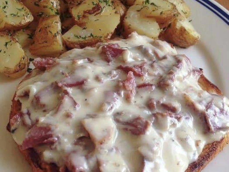Creamed Chipped Beef on Toast dates back to the early 1900s and became a staple in the U.S. military during World War II. It was hearty, inexpensive, and easy to make in large batches — a comforting meal for soldiers far from home. Today, it remains a beloved reminder of simpler times and classic home cooking.