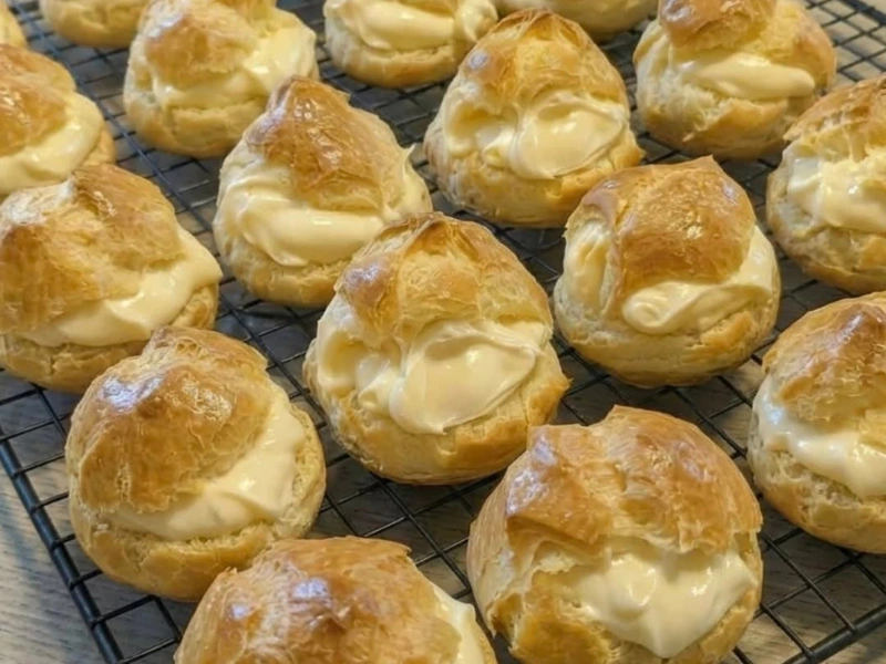 Delicate pastry with a lightly crisp shell and a soft, airy center, filled with a smooth vanilla cream that’s rich but not overly sweet. Bakery-quality flavor—with homemade love in every bite.