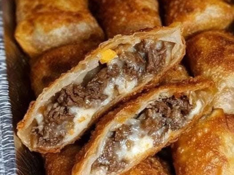 Egg rolls are a timeless favorite — crispy, golden on the outside, and packed with flavorful fillings that make every bite addictive. This recipe takes a Philly cheesesteak-inspired twist on the classic, featuring thinly sliced beef, sautéed onions, peppers, and melted provolone cheese wrapped in a crunchy egg roll shell.